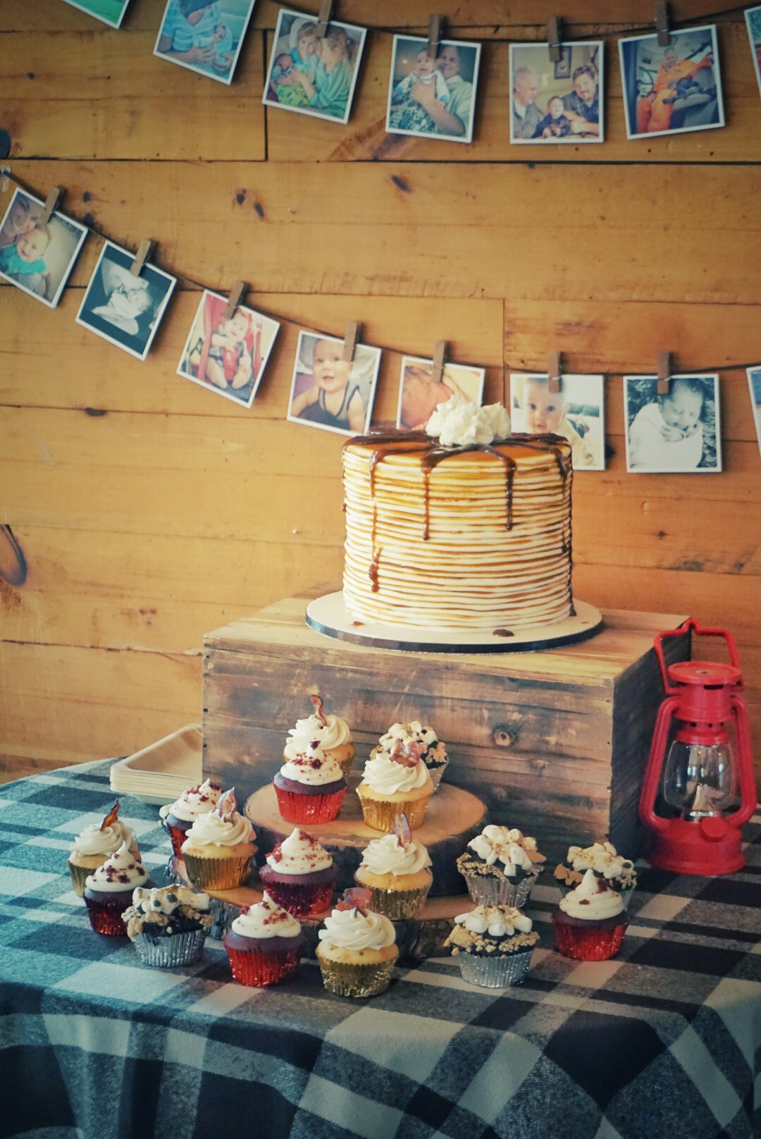 I’m also working on putting together all of the details of our super fun Lumberjack themed party just like our construction themed party. (Yes! That’s a flapjack cake!)