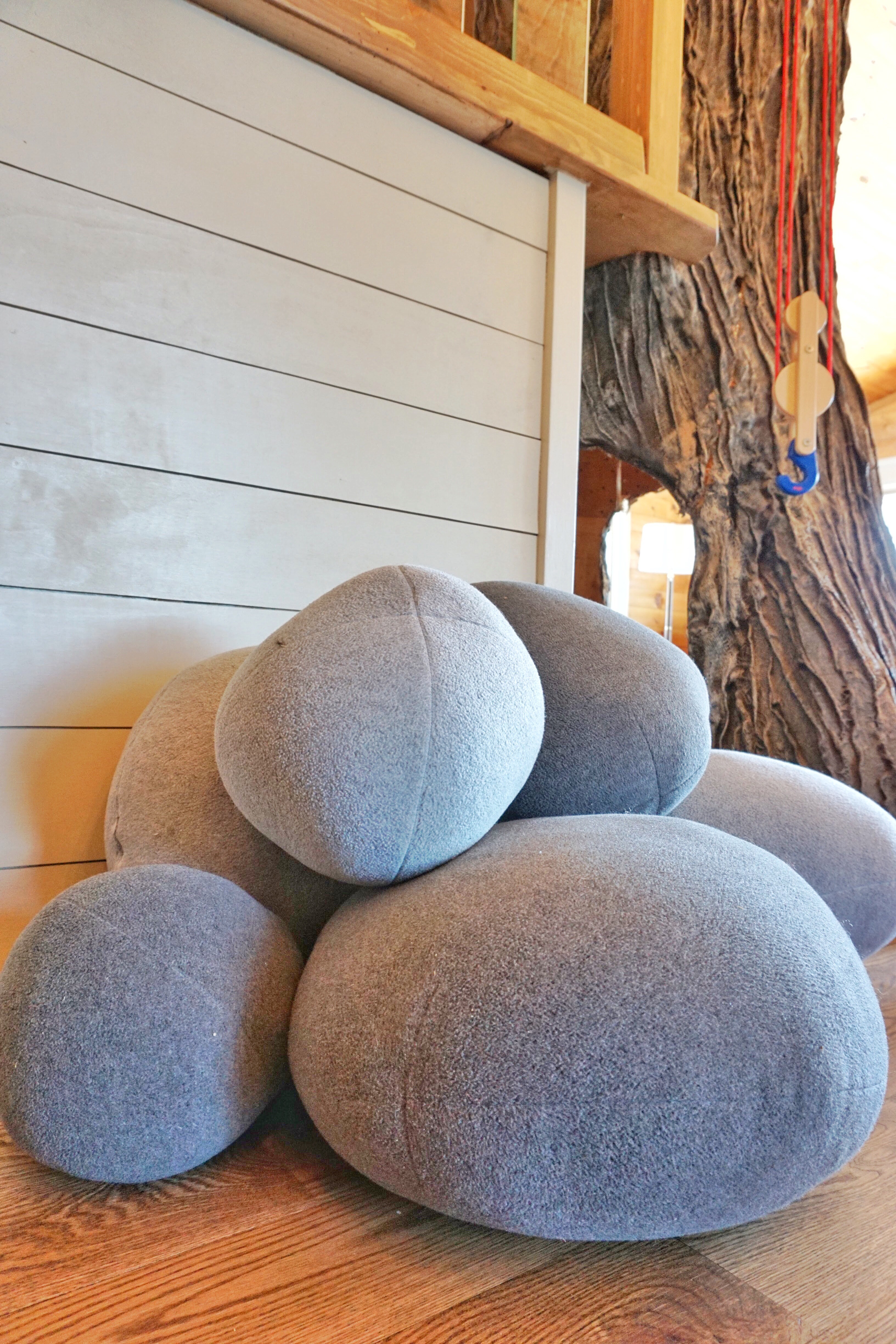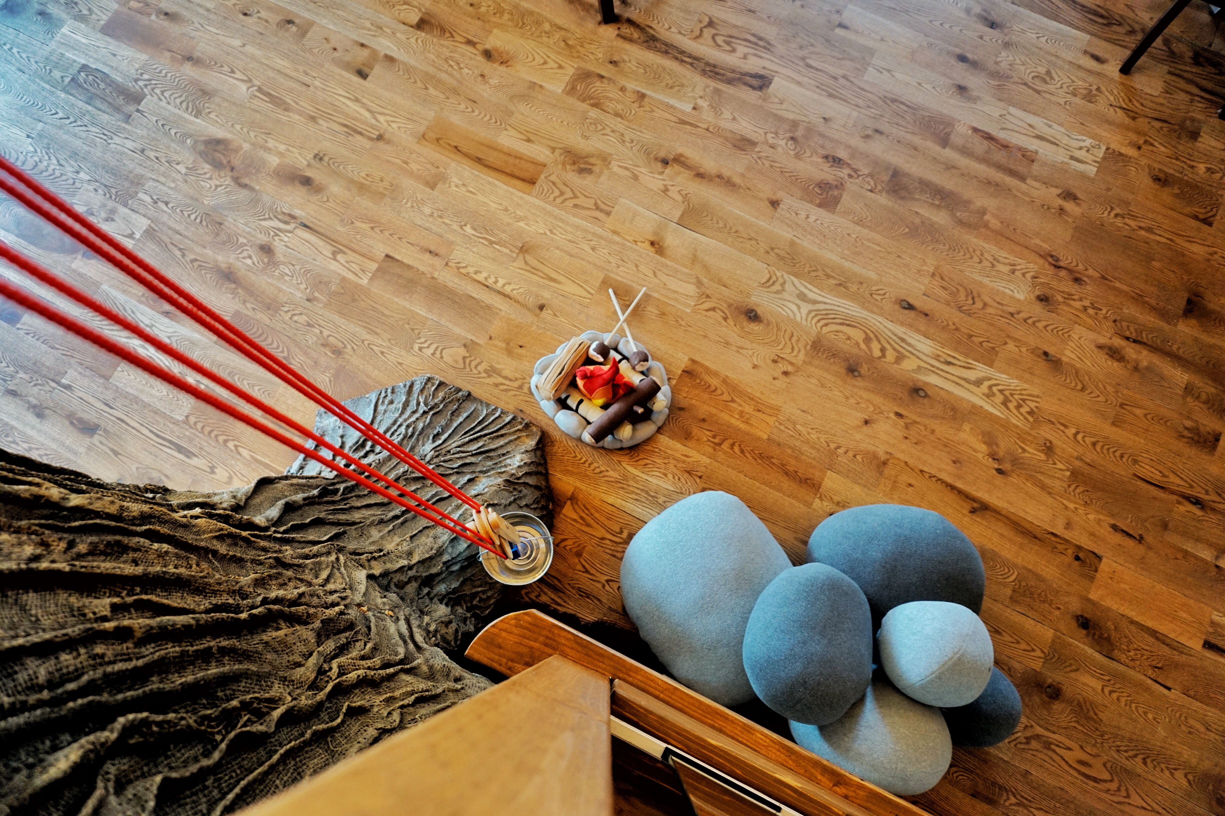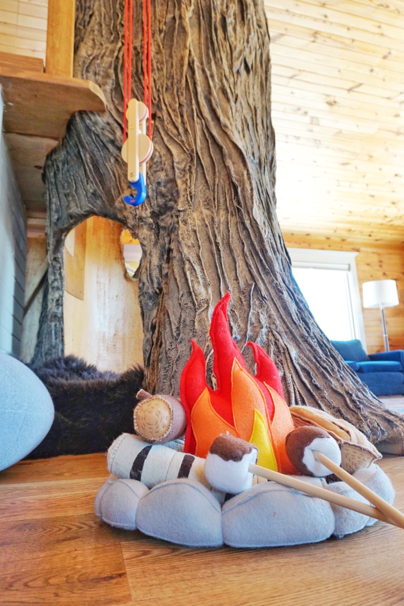We have enjoyed adding toys and accessories that fit with the theme, like our handmade felt fire ring from HopewellCreek on Etsy, and our giant rock pillows.