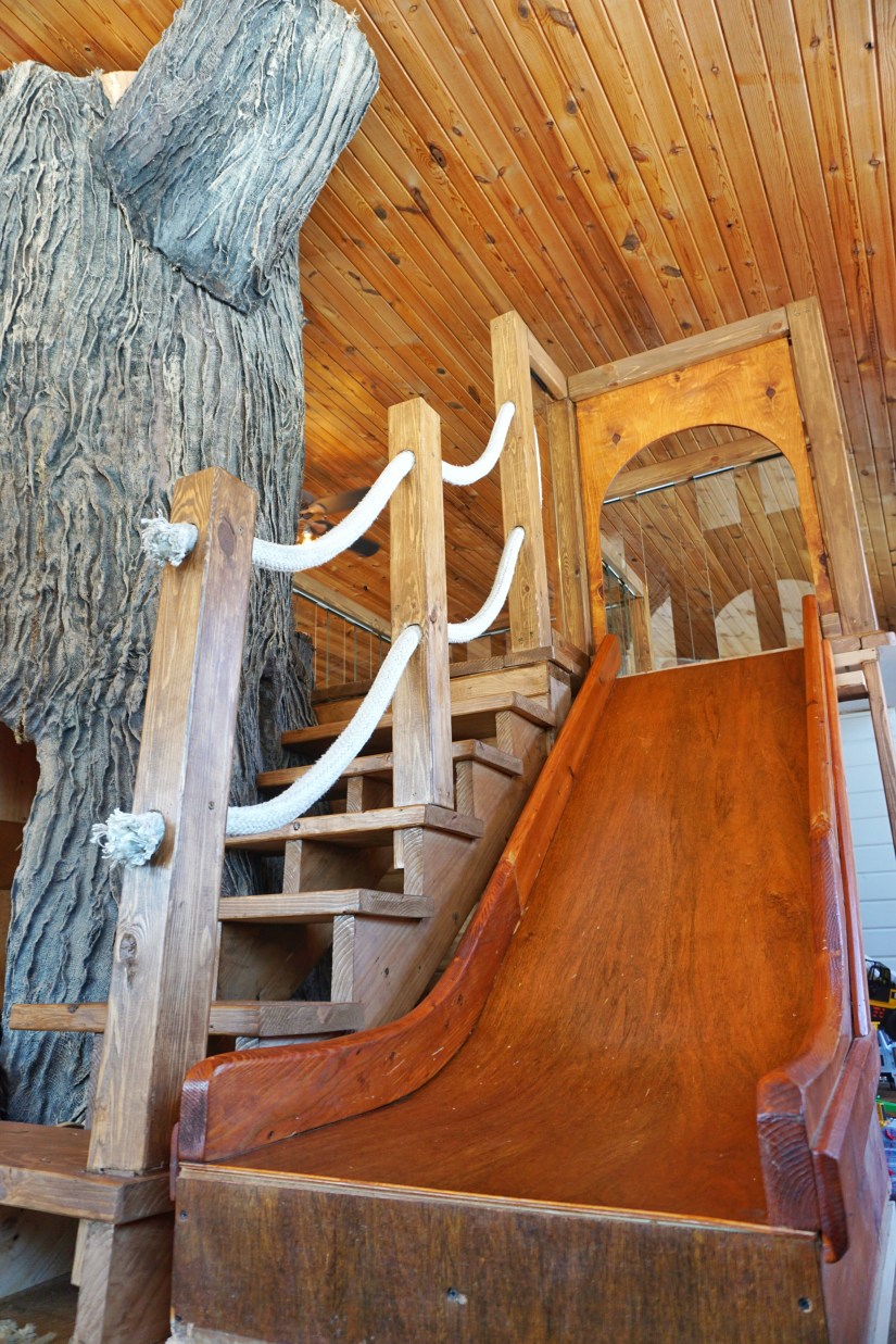 Check out this fun slide! And let me tell you, it goes FAST! My 2 year old just learned how to go down all by himself and he’s pretty excited about it!